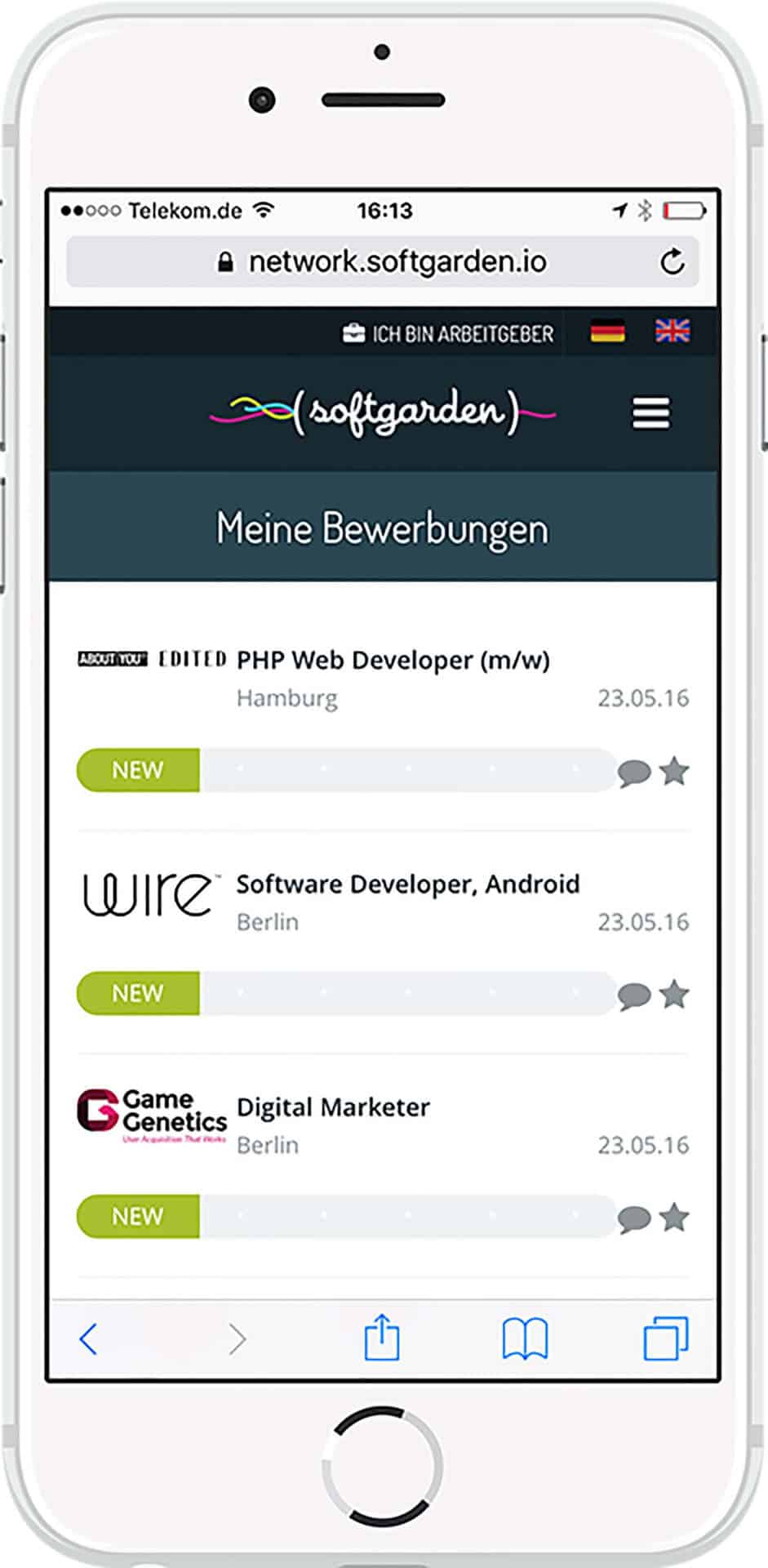 Aber softgarden geht noch einen Schritt weiter. Bewerber sollen jederzeit sehen können, in welchem Status sich ihre Bewerbung befindet. Ist sie „unbearbeitet“, „angesehen“ oder „zur Prüfung bei der Fachabteilung“? Wenn Arbeitgeber dem Verfahren zustimmen, können sich Bewerber per Mausklick aus dem System heraus über den Stand der Dinge informieren, ohne bei ihrem Wunscharbeitgeber nachfragen zu müssen.