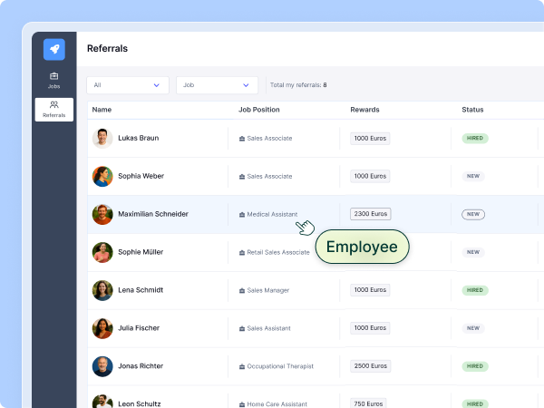 Let your employees speak for you: Motivated employees know suitable candidates and strengthen your employer brand. Thus, the referral manager supports employer branding – because no one promotes you better than your own team.