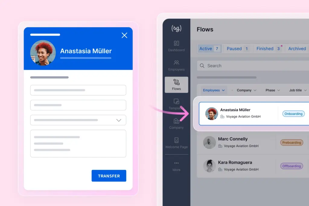 Track new hires, task statuses, and activities – all in one smart dashboard. Launch onboarding flows, monitor progress, and