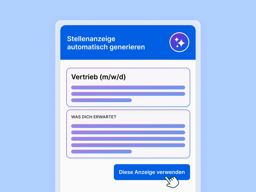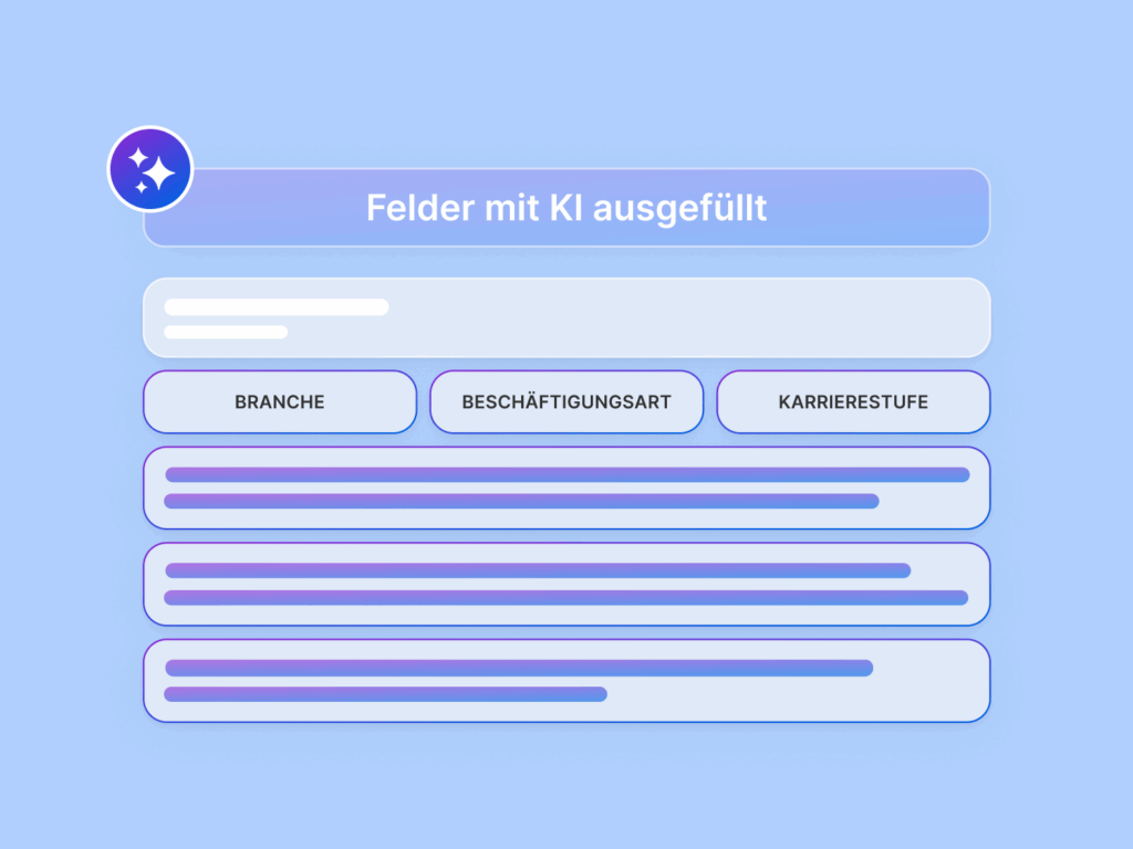 Professional job ads in no time at all: Simply enter the most important information about your job – our AI will support you with text suggestions on request and automatically create an appealing job ad.