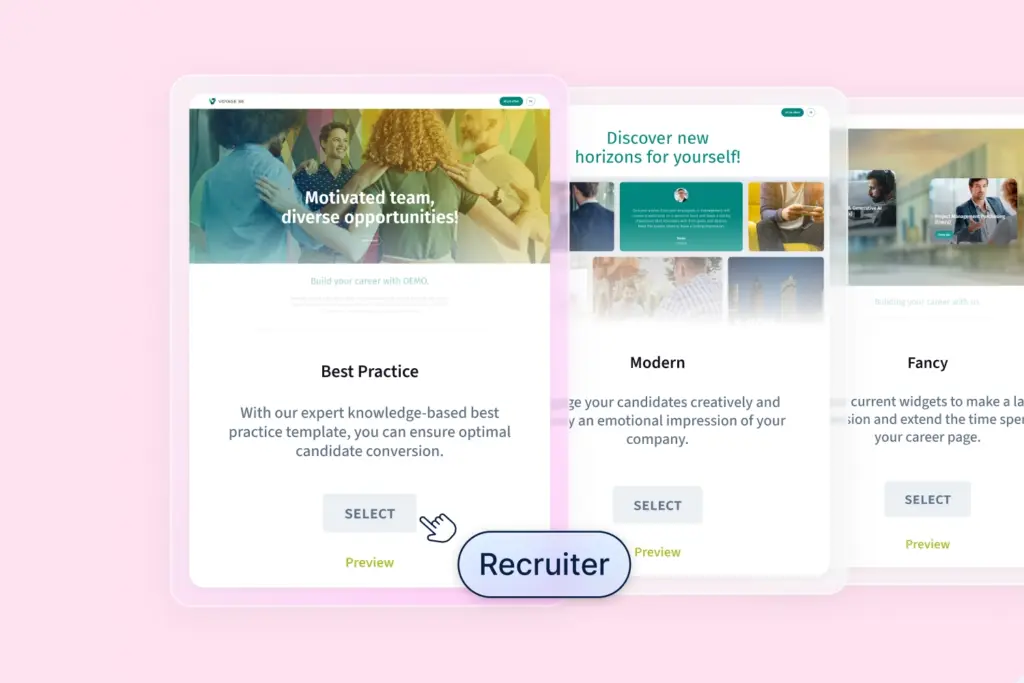 Make your employer brand shine and convince top talents – with a careers page tailored to your needs.