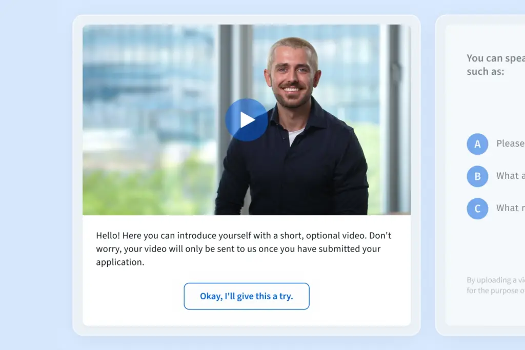 Candidates can optionally provide personal insights in short videos that go far beyond a resume, leaving a unique impression.