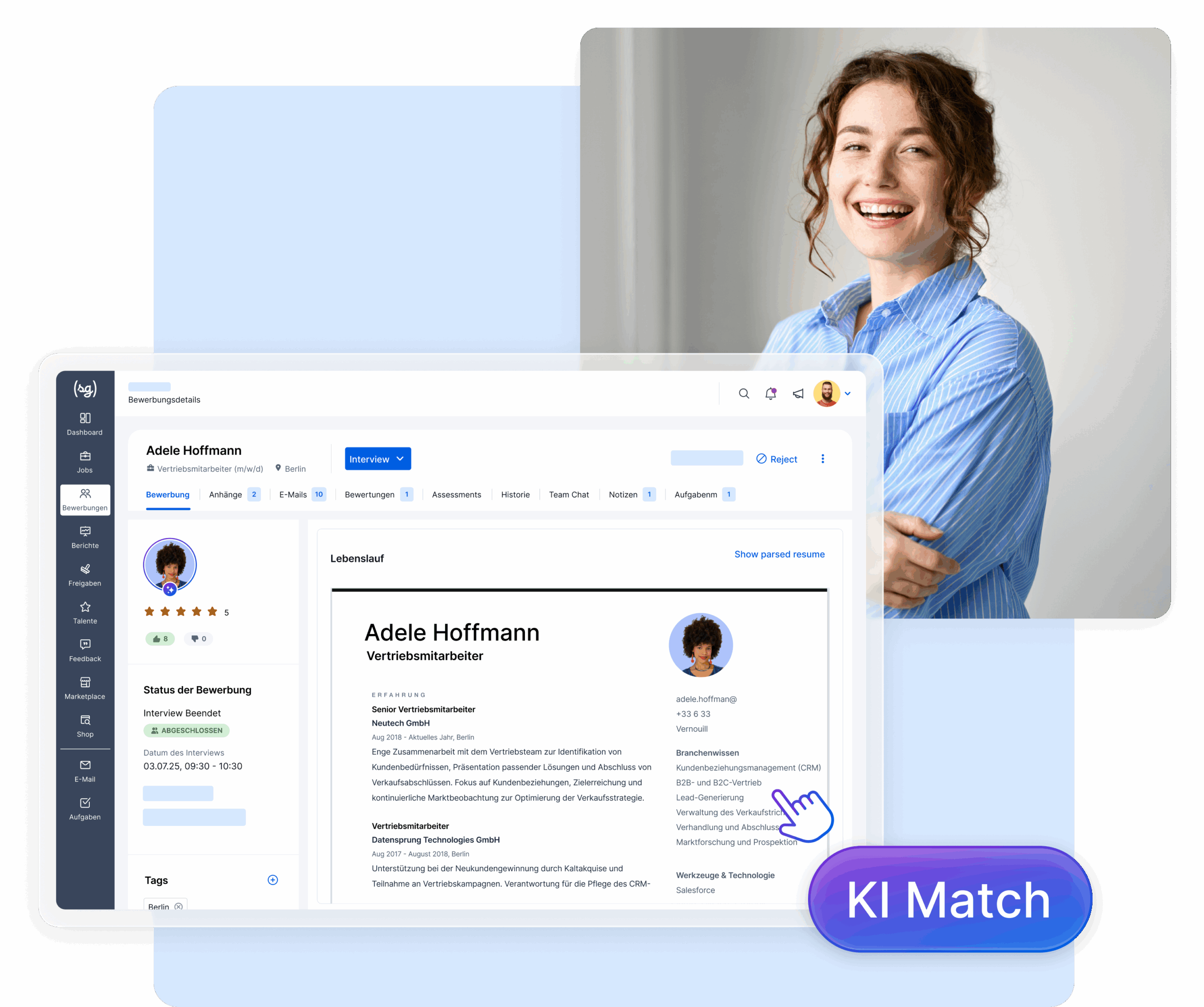 Thanks to minimal setup, quick onboarding and intuitive, practical features, you can get started right away and see immediate results. You won’t waste time with complicated setup, but will immediately benefit from more efficient processes and measurable improvements in your daily recruiting activities.